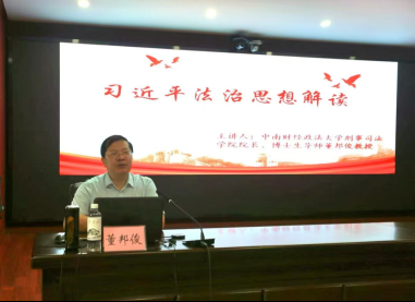 院长、博士生导师董邦俊教授受邀授课,以习近平法治思想解读为视角,讲述如何在刑罚执行与监狱管理中落实习近平法治思想,结合典型案例与前沿理论,为100余名监狱干警系统阐释了新时代监狱工作如何以法治思维破解实践难题。
