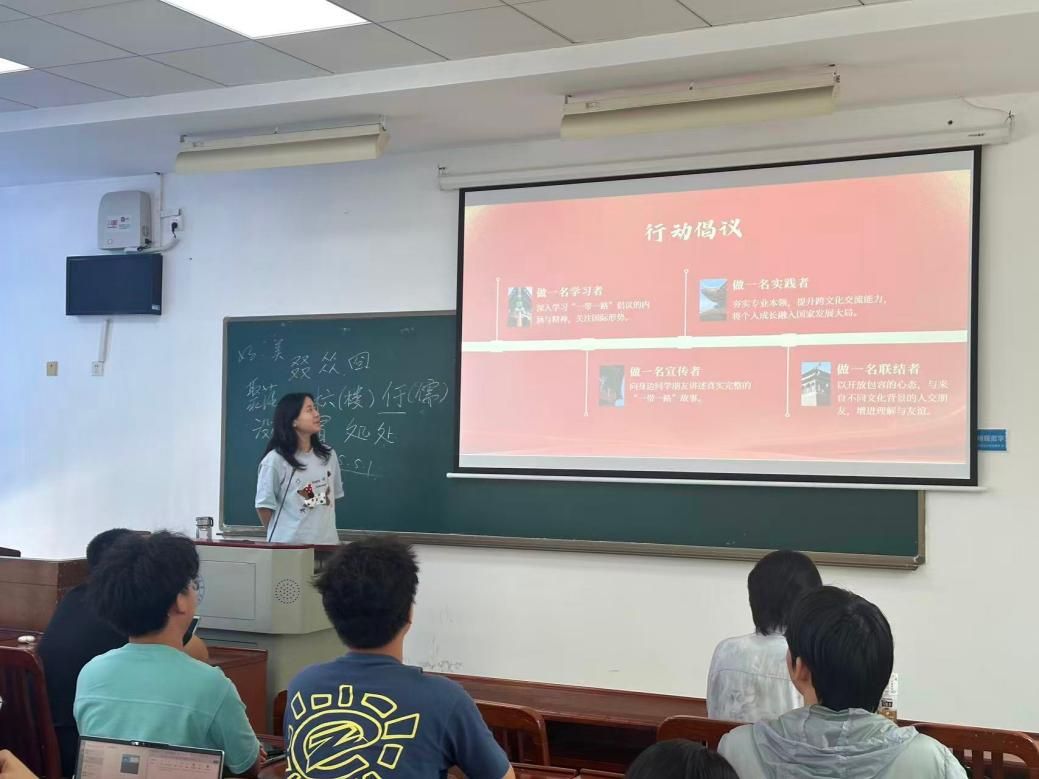 活动尾声,团支部向全体团员发出倡议,号召同学们争做“一带一路”坚定信仰者、有力传播者、忠实践行者。倡议提出,同学们要主动去学习“一带一路”的相关理论与国际形势其次,不断提升专业能力与跨文化素养,以开放心态促进文化交流,当好新时代的国际友好使者。