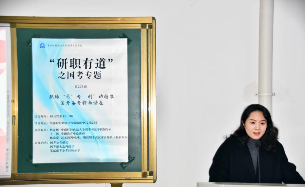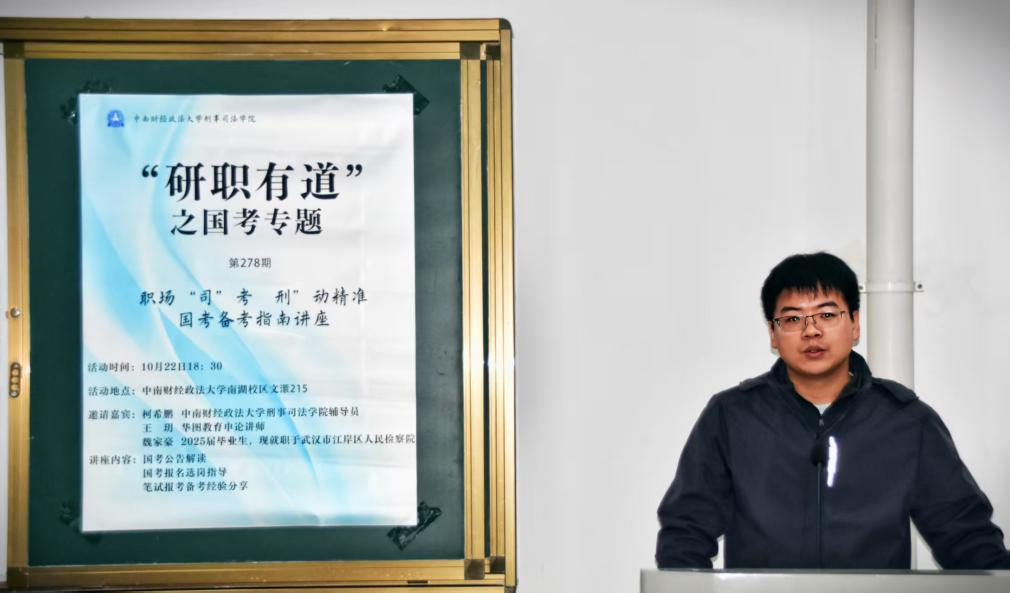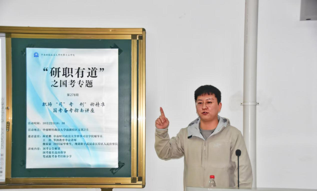 新闻网讯(学生通讯员 范晋霖 摄影 肖艺杰)为帮助991网 研究生明晰公务员考试方向、掌握科学备考方法,缓解备考焦虑,10月22日晚,991网 于文澴楼215举办“研职有道”国考专题备考讲座。本次活动特邀991网 辅导员柯希鹏、2025届优秀毕业生魏家豪、华图教育申论讲师王玥,从公告解读、选岗策略到实战经验,为在场有公考意向的研究生构建起全方位备考指南。