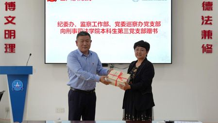 本科生第三党支部赠送《习近平关于加强党的作风建设论述摘要》,本科生第三党支部书记黄文菊代表支部接受赠书并致谢。张文剑表示,赠书旨在帮助青年学子深化理论学习,坚定理想信念,推动深入贯彻中央八项规定精神学习教育向基层延伸,助力青年党员筑牢思想防线。