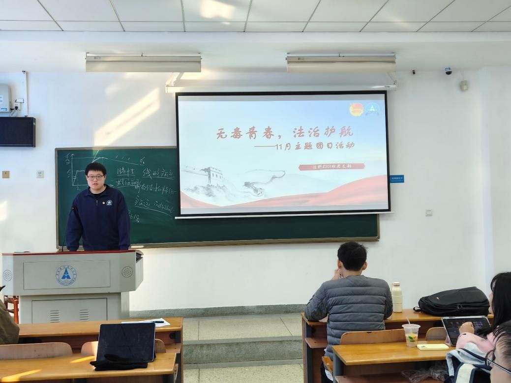 新闻网讯(学生通讯员 王晓峰)为了加强同学们对毒品危害的认识,提高禁毒意识,法科2301班团支部于11月20日举办了“无毒青春,法治护航”主题团日活动。此次活动邀请到了三位参加11月19日991网 携手省江夏强戒所开展“青春护航,无毒同行”主题团日活动的同学——王晓峰、方睿轩和水田阳,来分享他们的感悟,为全班同学带来一场生动的禁毒教育。