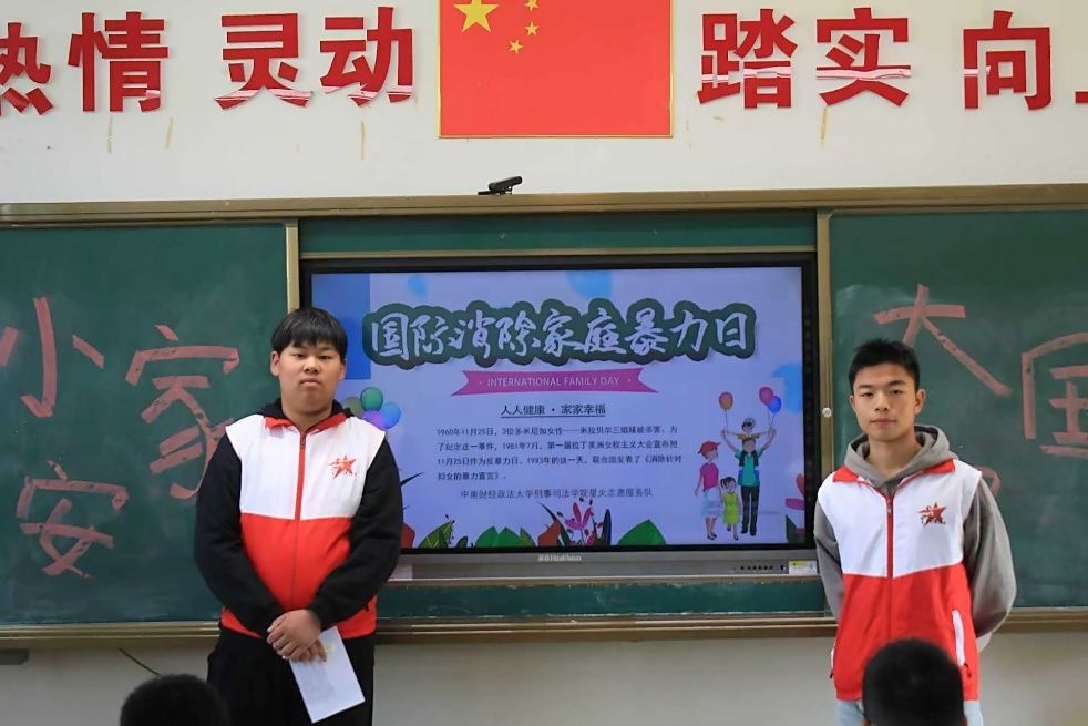 新闻网讯(学生通讯员 龙科航)11月25日“国际消除家庭暴力日”来临之际,为帮助小学生认识家庭暴力危害,提升自我保护意识与能力,991网 志愿者协会星火志愿服务队走进光谷第五小学,开展“人人健康,家家幸福”反家暴宣传教育活动。活动通过生动讲解、互动问答等形式,为孩子们筑起坚实的安全防线。