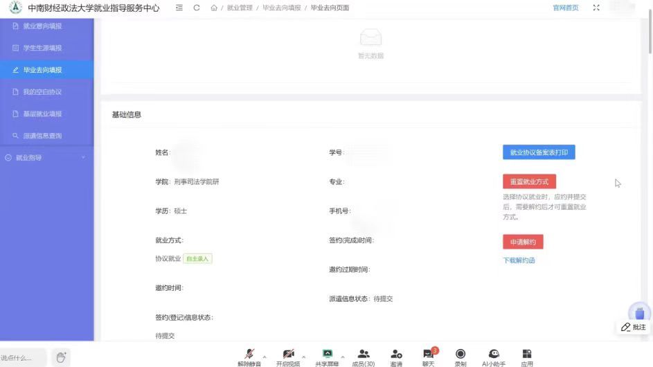 就网签操作流程,王晓丹详细讲解了网签系统的登录入口、单位邀约响应及毕业去向自主录入、解约流程等操作步骤。她强调,完成网签后即可导出就业协议备案表,务必结合个人实际准确填写档案接收信息,并提醒同学们签约前慎重决策。
