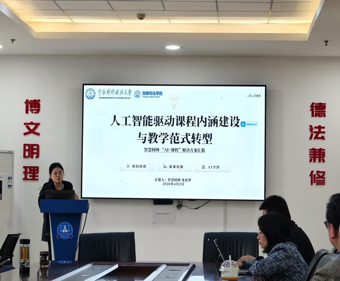 周院长详细介绍了本次教研活动举办背景、核心目标及议程安排。智慧树公司相关负责人龙思华女士立足高等教育数字化发展大势,结合991网 教学改革实际,作了题为《人工智能驱动课程内涵建设与教学范式转型》的专题汇报,汇报从改革背景、实操路径、落地场景、成果验证、实施计划五大维度,系统阐释了AI技术赋能高校教学改革的核心逻辑与实践方案,为991网 推进课程智慧化升级、实现教学范式转型提供了清晰指引与实操遵循。